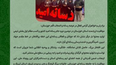 بی‌تردید این موفقیت، مایه مباهات مردم شریف خوزستان و انگیزه‌ای مضاعف برای استمرار مسیر روشنگری، روایت‌گری مسئولانه و تقویت امید در جامعه است.