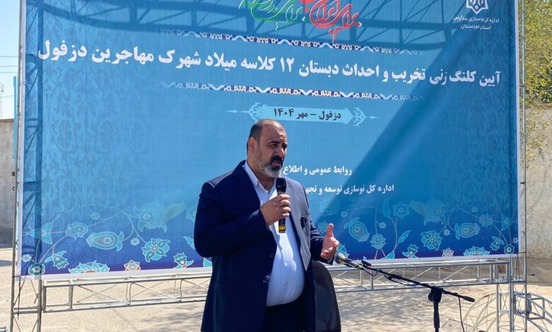 عملیات ساخت مدرسه ۱۲ کلاسه میلاد در آیینی با حضور مسوولان محلی و استانی با اعتباری افزون بر ۵۰۰ میلیارد ریال در روستای مهاجرین دزفول آغاز و چمن مصنوعی دبیرستان دوره اول استاد شهریار دزفول بهره برداری شد.