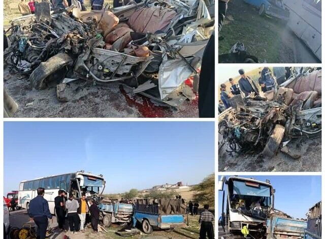 برخورد مرگبار اتوبوس با چند خودرو در محور دزفول – شوشتر