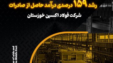 رشد ۶۱ درصدی صادرات و رشد ۱۵۹ درصدی درآمد حاصل از صادرات در فولاد اکسین خوزستان
